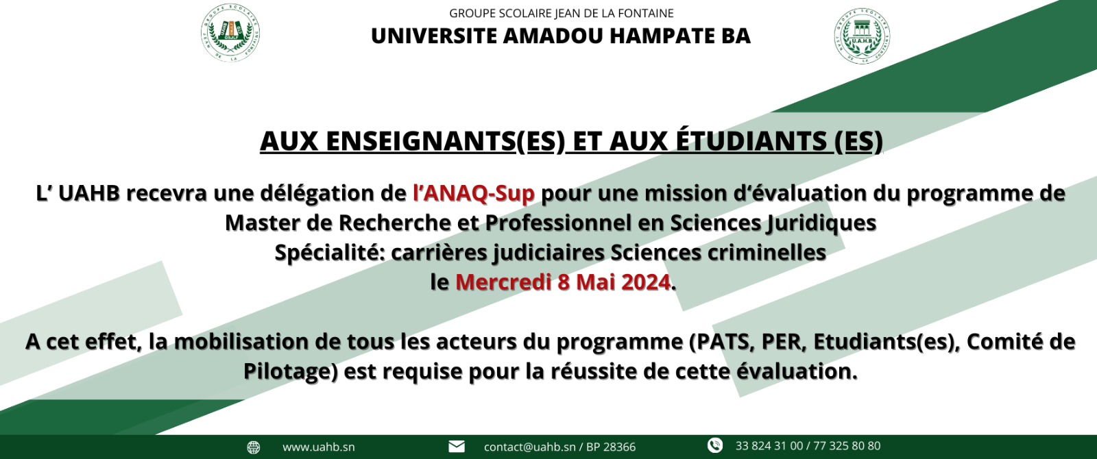 Le Lundi 30 juin 2025, l’Université Amadou Hampate Ba, à travers sa Cellule Insertion Professionnell, a eu le plaisir d’accueillir Madame Mame Bineta YADE, ancienne étudiante de l’établissement, aujourd’hui Responsable Commerciale et Marketing chez Alliance Auto Group et fondatrice de Elite Mentorat Consulting, pour un atelier pratique dédié à l’entretien …